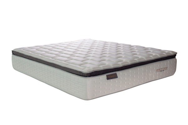 Colchón modelo Kingsbury con su nombre bordeado , línea World Luxury de King Koil , FIRMEZA Y ESTILO , superficie de contacto : tejido de punto totalmente matelaseado con capas de espuma soft y viscoelástica REACTION TECHNOLOGY . Pillow Top : compuesto de una placa de espuma firme y revestido completamente de tela de pana sin matelasear . Resortes Pocket enfundados individuales de King Koil , laterales de Hard Foam (espuma indeformable) revestido con tela jackard matelaseada . Turn Free (libre rotación , no se da vuelta) . Soporta hasta 130kg por persona . Máximo módulo de confort , estructura bien firme y confortable . Altura del colchón : 33cm