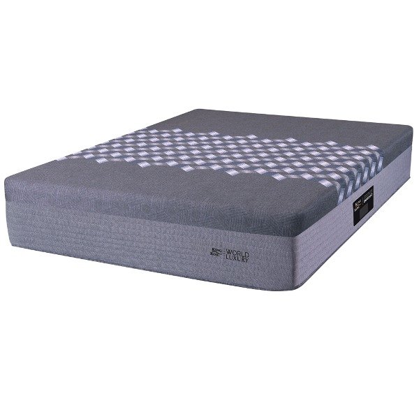Colchón modelo Kingsbury con su nombre bordeado , línea World Luxury de King Koil , FIRMEZA Y ESTILO , superficie de contacto : tejido de punto totalmente matelaseado con capas de espuma soft y viscoelástica REACTION TECHNOLOGY . Pillow Top : compuesto de una placa de espuma firme y revestido completamente de tela de pana sin matelasear . Resortes Pocket enfundados individuales de King Koil , laterales de Hard Foam (espuma indeformable) revestido con tela jackard matelaseada . Turn Free (libre rotación , no se da vuelta) . Soporta hasta 130kg por persona . Máximo módulo de confort , estructura bien firme y confortable . Altura del colchón : 33cm