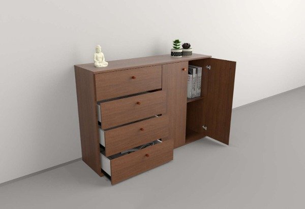 Bahiut 1,35m 2 Puertas/4 Cajones Caoba Tabaco