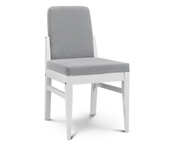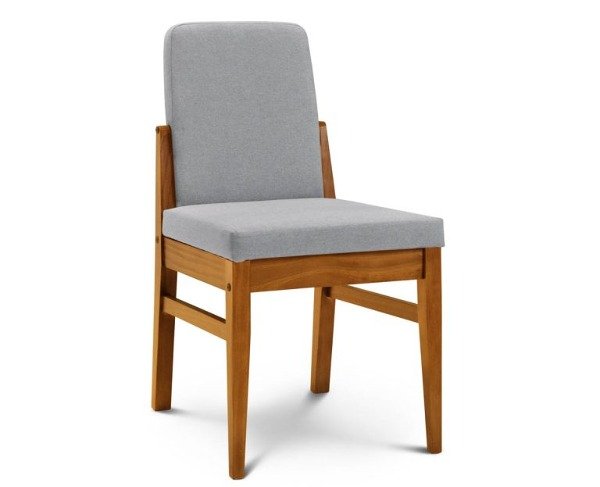 Silla fabricada en madera maciza de Pino Clear. Tapizada con tela antimanchas.