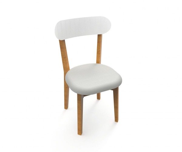 Estructura de pino tipo Elliotis. Respaldo multilaminado laqueado blanco. Asiento tapizado en cuerina o tela.