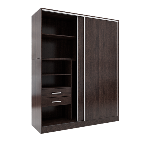 1814 x 2255 x 600 mm, Dos puertas, dos cajones internos, perfilería de aluminio.