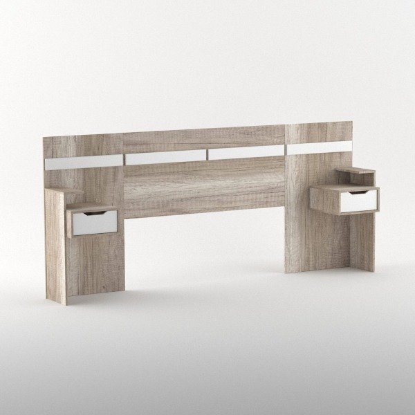 Cuenta con dos prácticas mesas de luz con un cajón cada una. Al ser flotantes permite abrir los cajones bajo cama sin inconvenientes.